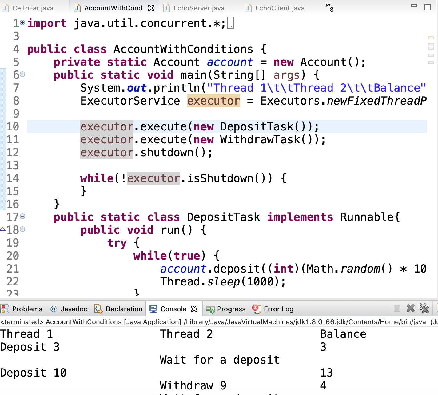 It is created with the ExecutorsnewFixedThreadPoolthreads method. Each part of such program is called a thread. Hence it is also known as Concurrency in Java.